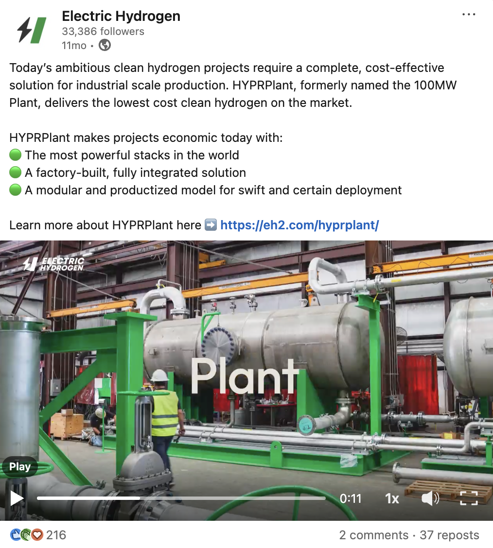 Demonstrate the $1B green hydrogen startup’s credibility, product performance and industry leadership
